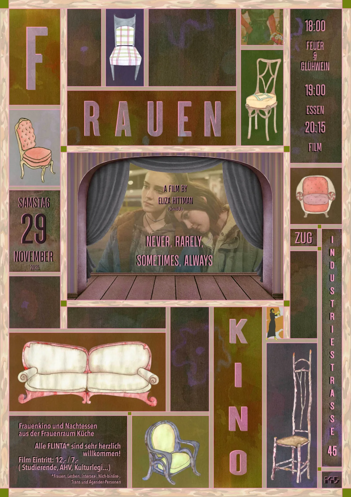 Wir freuen uns auf euch – dieses Mal bereits ab 18:00 Uhr zu Feuer und Glühwein. Um 19:00 gibt es Vegiburgers und Fries, und der Film startet um 20:00 Uhr. Bring all your sisters!