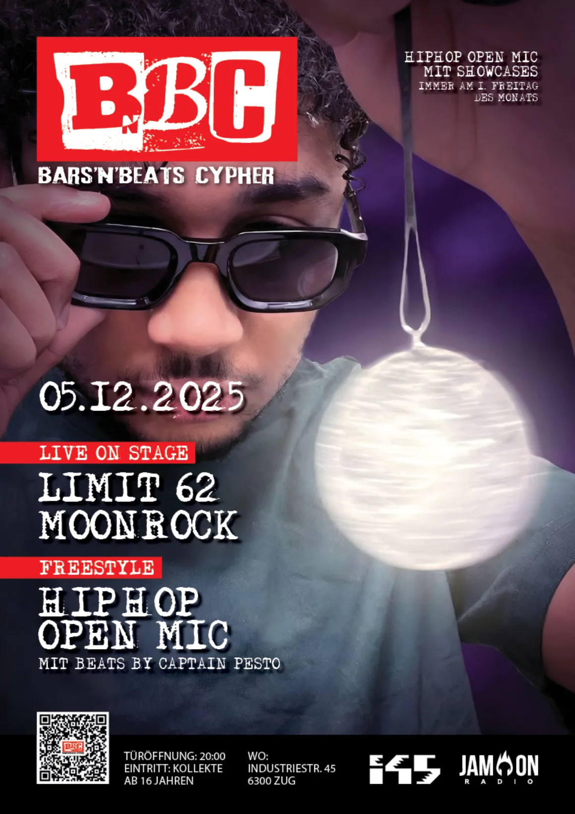 Für die letzte Cypher des Jahres bringen wir zwei Showcases an den Start: Limit 62, der mit seinem Fruchtsaft-Freestyle bewiesen hat, wie vitaminhaltig seine Bars wirklich sind – frisch gepresst, direkt ins Gesicht. Und Moonrock, der Newcomer, der mit futuristischem Flavor bereit ist, neue Maßstäbe zu setzen!