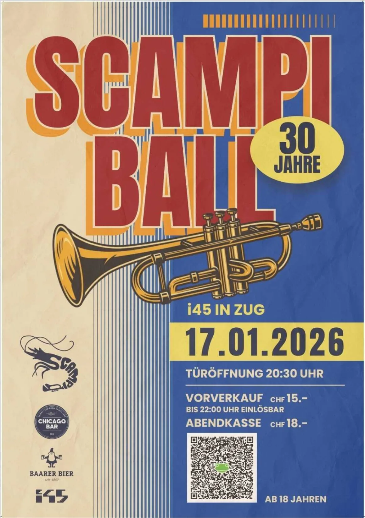 Am 17. Januar isches wieder so wiit! I de i45 stiiigt de langersehnti SCAMPIBALL!!! Unterem Motto „30 Jahr Scampiball“ entfüehremer eu das Jahr ih diversi Mottos vo de lezte Jahre.