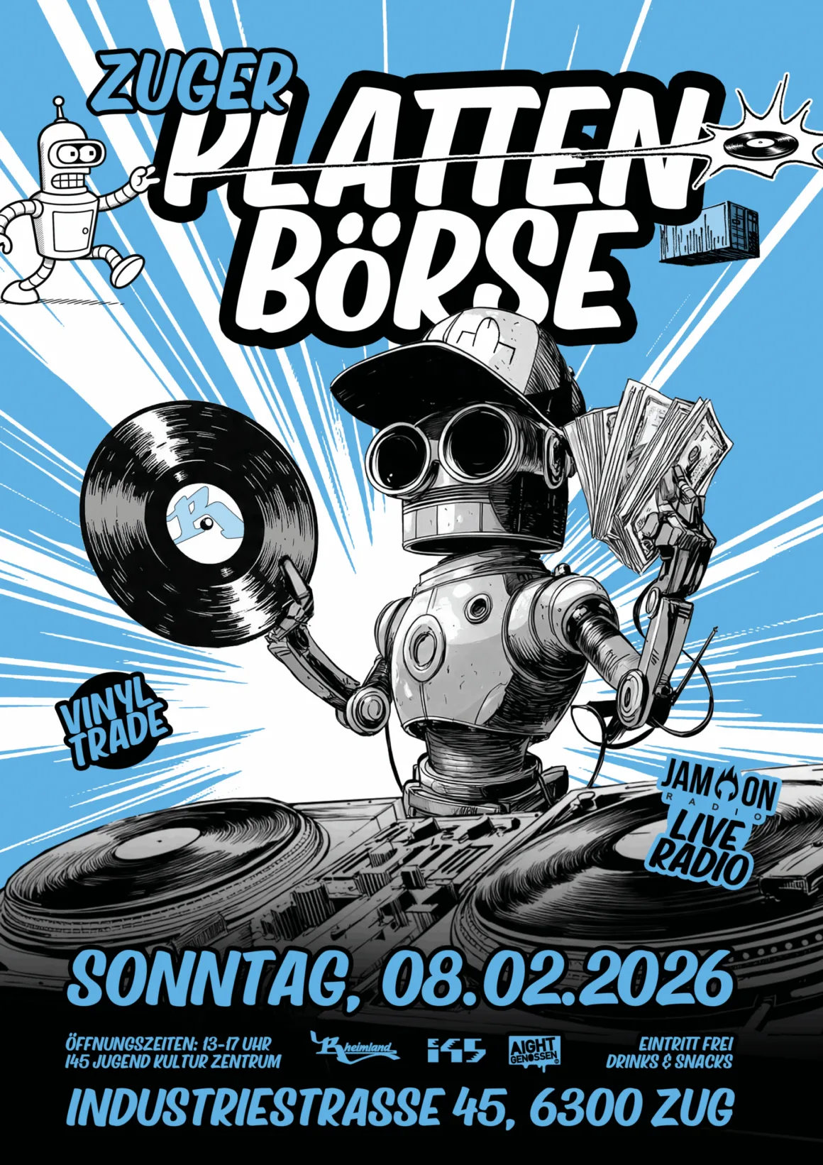 Die Zuger Plattenbörse wird möglich durch die Zusammenarbeit von Rheimland und Jam On Radio. Sei dabei, wenn Zug zum vierten Mal zum Treffpunkt für Vinylfans wird!